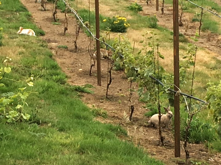Last stop before our 7pm dinner reservation, was Comforts of Whidbey winery. They used to have rabbits in cages, but turned them loose and now they eat the weeds below all the grapes. And the two cuties were inside this time with us. 🍷